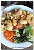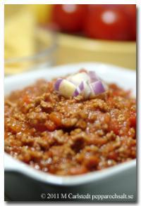 Gör så här:Finhacka löken. Tärna eller skär korven i stavar. Skala och tärna potatien och morötterna. Mjukfräs löken på ganska låg värme så den blir mjuk och lite genomskinlig. Låt det ta några minuter, annars blir lökbitarna inte mjuka. Lägg i korven, potatisen och morötterna och låt allt få lite färg. Tillsätt kryddorna. Späd med buljong och tomatpuré. Låt koka upp. Lägg i pastan och ta tiden efter anvisningen på förpackningen. När pastan är nästan mjuk, smaka av med chilisås och tillsätt eventuellt ärtor och grädden. Severa gärna med ett grovt bröd eller knäckebröd. ![]()