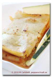 Ofta lagar vi klassisk lasagne som badar i köttfärssås och ostsås. Men den värmande pastarätten kan lika gärna av en god vegetarisk fylld med grönsaker. Prova goda varianter som vegetarisk lasagne med parmesanost eller ett gott recept på vegetarisk lasagne med keso. Pepparochsalt.se föreslår gärna en god fullkornslasagne, fylld med zucchini och med god smak av ädelost som bryter fint mot grönsakerna. Lite nyttigare än klassisk lasagne, men minst lika god! Hinner du inte i kväll? Vi har recept på riktig snabblasagne också. Det går utmärkt att byta ut korven mot 150 gram fetaost i stället. Och gärna några oliver, så är kvällen räddad!
